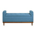 Mid-Century Modern lines define the design of the Brigitte Collection, providing both seating and storage in one functional piece. The accent bench’s interior space creates function beyond the button-tufted lift-top seat, providing the perfect space to store your decorative pillows and blankets. The blue textured fabric upholstery that covers the storage ottoman is perfectly complemented by the walnut finish of the solid wood support frame. 50 x 18.5 x 22.5H
