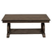 Bold curves provide elegant contrast to the unique look of the Toulon Collection. The heavily scrolled base supports of the cocktail table feature French provincial inspired routing while distressed dark oak finish provides texture to the acacia veneer. 48 x 26 x 19H