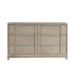 The sophisticated modern styling of the McKewen Collection brings refined design to the elegant space of your bedroom. The dresser features ash veneer, which features a light gray finish that perfectly complements the horizontally mounted, pewter-finished, metal hardware that centers each of the unit’s drawers. 64 x 18.5 x 39H