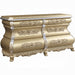 • Intricately hollow carved design with romantic scrolling accent highlights this extraordinary style. The Seville Bedroom Collection creates opulence and drama in your room with the dazzling gold hue that enhances its detailed extravagance. Button tufted headboard and footboard add depth and a luxurious sense of comfort. Matching casegoods offer self-closing drawers with built-in safety stops and felt-lining. Show your confidence and make a bold statement in your personal space with the Seville Bedroom Collection.