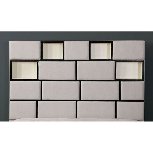 FOA WestTAWANA Cal.King Bed, 94 3/4"L X 79 1/2"W X 48 1/4"H, 168.3lbs. A linen-like fabric padded headboard highlights this bedroom set with a pronounced w...