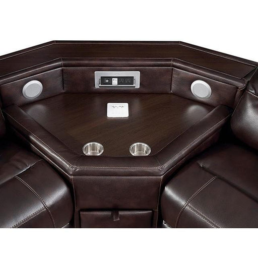 FOA WestHardy Brown Sectional w/ Console, Brown, 101 1/4"L X 67"W X 38 1/2"H, 277.2lbs. Bask in the alluring comfort of this corner sectional and feel the ...