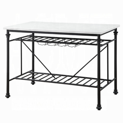 ACME WestRectangular Kitchen IslandStorage: 2 Drawers & 2 Tier ShelvesFull Extension Drawer GlideSide Metal GlideMarble Top Wooden Turned LegFeatures• K...