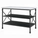 Minimalistic design paired with clean, simple color. The Brahm Kitchen Island gives off a light and airy feel to a compact cooking space. Clean-lined metal frame is topped with a artificial stone top, creating a sleek, modern silhouette that gives your kitchen an open feel. Spacious rectangular table top with two tier shelf provides more countertop space and storage. Use this stylish yet functional addition to complete your kitchen decor.
