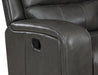 The Linton Leather Motion Collection brings comfort and sophistication to any living room. With a focus on relaxation, this collection includes a sofa with dual recliners, a console loveseat with dual recliners, and a glider recliner.Featuring a coil cushion and a hardwood/plywood frame, these pieces are built to last. The dark brown leather/match and dark gray color options add a stylish touch to any space. The full leather front, match back and sides give these pieces a luxurious feel. The console loveseat comes equipped with a USB port and a storage box, providing even more convenience and organization.Overall, the Linton Leather Motion Collection is a comfortable and stylish choice for any home. Its sophisticated design and high-quality materials make it a perfect choice for anyone looking to add a touch of luxury to their living room.