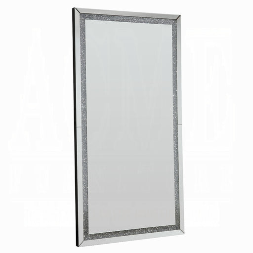 ACME Noralie Floor Mirror w/LED, Mirrored & Faux Diamonds, 19" x 60"H, 48lbs. Features: - Accent Floor Mirror - Rectangular Shape (Portrait Ori...