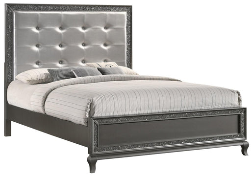 New ClassicPark Imperial Collection by New Classic Pewter finish Button-tufted details and crystal inlay trim adds a touch of distinction This bed requires a...