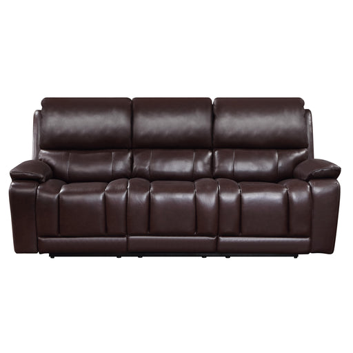New ClassicJOSHUA LEATHER SOFA W/DUAL RECLINER-DK BROWN