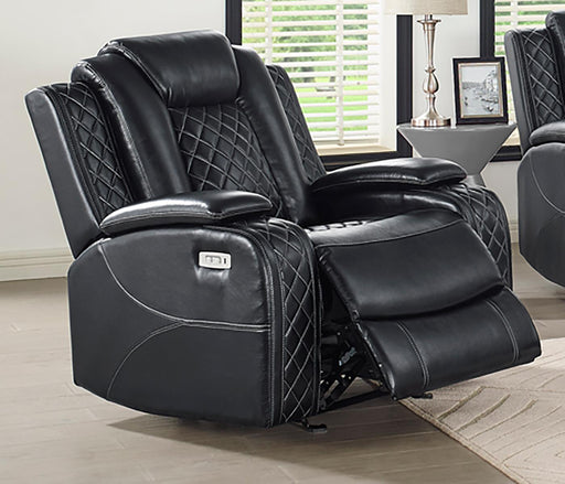 New ClassicOrion Collection by New Classic Furniture Black finish Leather upholstered frame Reclining mechanism Includes power headrest and footrest