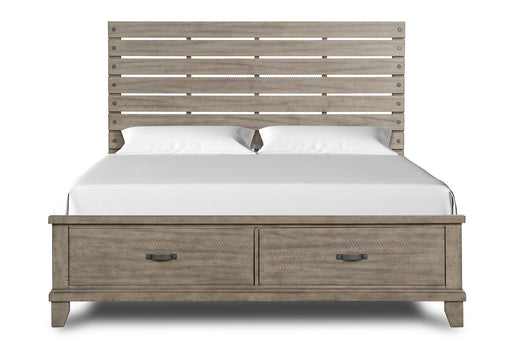 New ClassicFairfax Collection by New Classic Furniture Driftwood finish 2 Drawers in the footboard Crafted from poplar, birch and maple solids and veneers Ke...