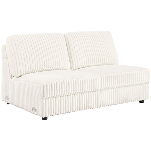 Add versatile seating to your sectional with the armless loveseat, upholstered in ivory wide corduroy. This piece offers plush comfort and easily f...