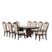 The Montecito Dining Collection is a luxurious line of furniture that coalesces modern design with the craftsmanship of handmade wood carvings. It 100% polyester upholstery in various custom-designed fabrics, each with its own elegant pattern. The button-tufted backing gives a one-of-a-kind look for producing an exquisite dining room setting.