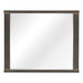 The elegant modern profile of the Scarlett Collection will be the perfect addition to your bedroom. Cashew solid wood and mindy veneer is finished in a brownish gray with gold finished accent banding lending subtle contrast to the profile of the mirror frame. 42.5 x 2 x 35H