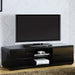 Cerro Black 59" TV Console, Black, 59"W X 15 3/8"D X 15 3/4"H, 120lbs. Finished in white or black high gloss lacquer, this modern TV console has room for the largest TV, full extension drawers for storage and open shelving for easy access to media components. Features: Modern Style High Gloss Lacquer Coating Full Extension Drawers Rear Wiring Access