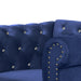Introducing the Emma living room set - the perfect combination of style and comfort for your home. This set includes a sofa, loveseat, and chair, all featuring a stunning crystal tufted back that adds a touch of glamour to any space. Made with 100% polyester, these pieces are durable and easy to maintain. The set is available in three sleek colors - blue, black, and gray - so you can choose the one that best matches your decor. Upgrade your living room with the luxurious Emma set and enjoy hours of relaxation and entertainment.