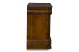 The Sheridan Bedroom Collection is a stunning addition to any home. The collection includes a bed, nightstand, dresser, mirror, chest, and media chest, providing everything you need to create a cohesive and elegant bedroom.Crafted from poplar and basswood solids and veneers, this collection is both durable and beautiful. The burnished cherry finish adds warmth and depth to the pieces, making them a welcoming addition to your home.The full extension drawer glides make it easy to access all your belongings, while the 5-piece drawer box with 4 corner dovetail construction ensures the drawers are strong and stable. The felt-lined top drawers in the dresser, chest, and nightstand are perfect for storing your most delicate items.The solid casegood bottoms and bed side rails with 4 support slats add extra strength and stability to the pieces. The beveled glass mirror finishes off the collection with a sophisticated touch.Upgrade your bedroom with the Sheridan Bedroom Collection and enjoy its timeless beauty for years to come.